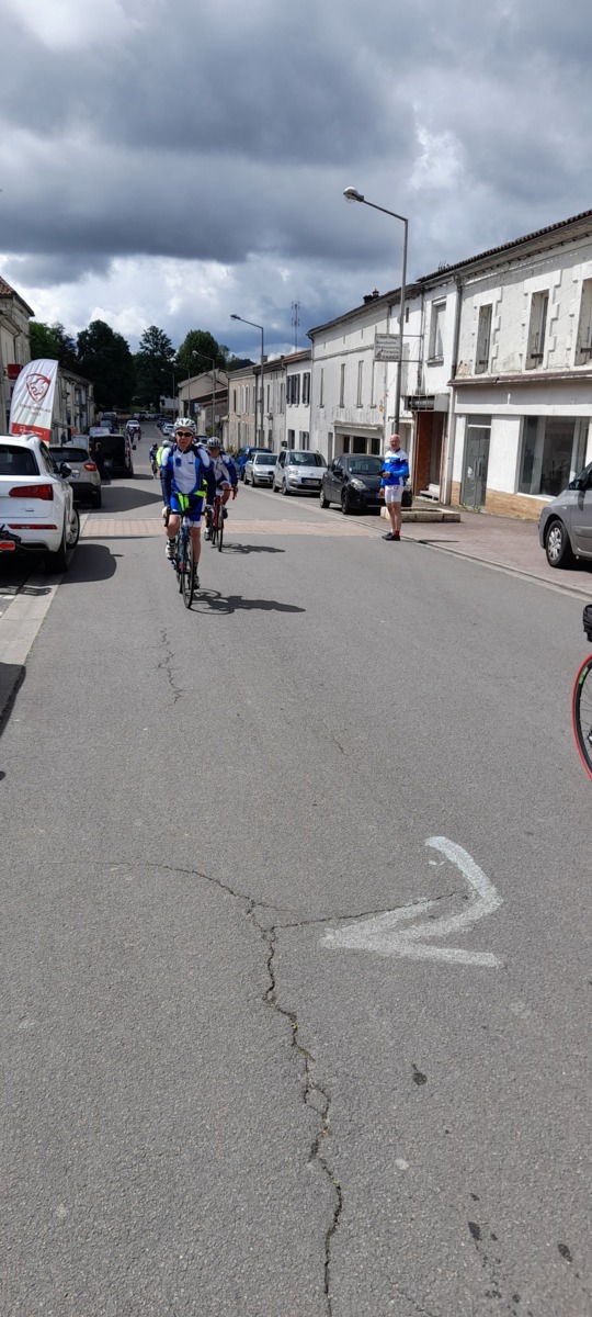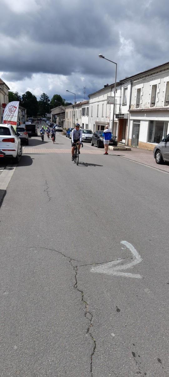 - Après un départ de Libourne (cause flamme olympique), le parcours (120 kms) nous a conduit à Angoulême en traversant les hautes collines du Berbezillien et de l’Angoumois.